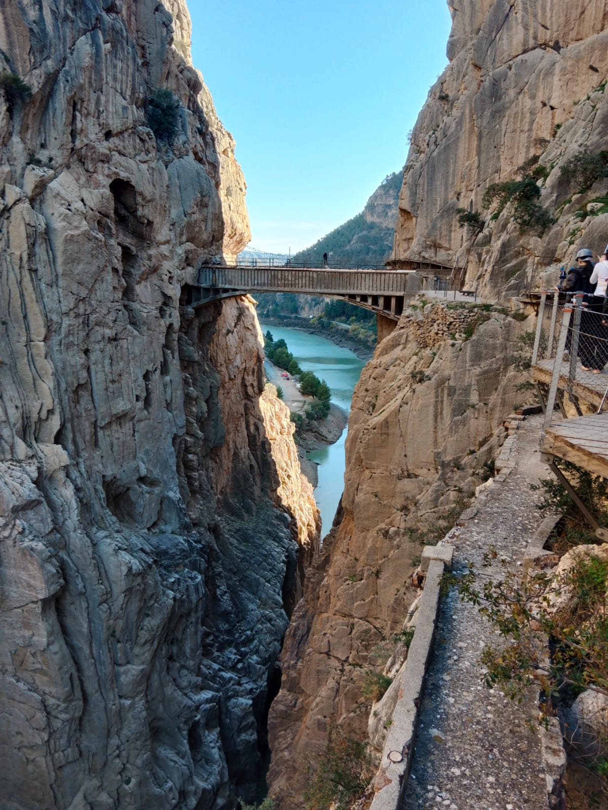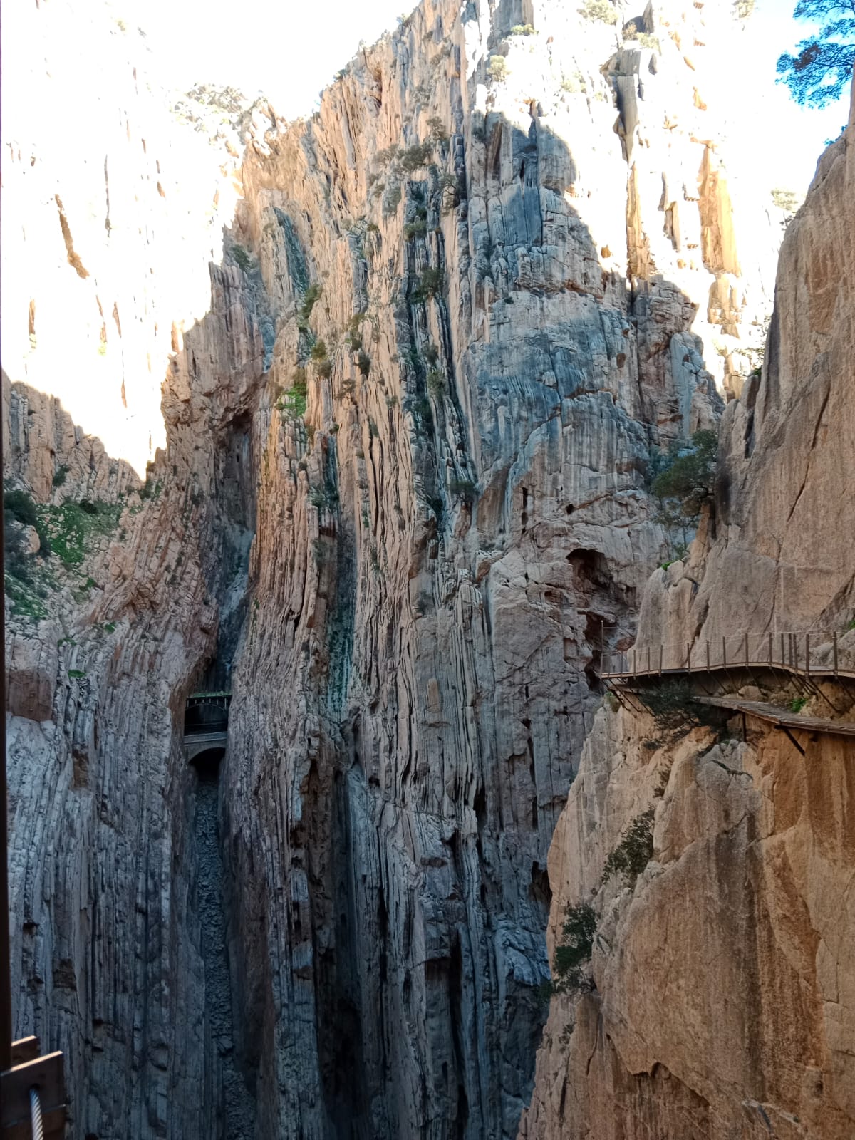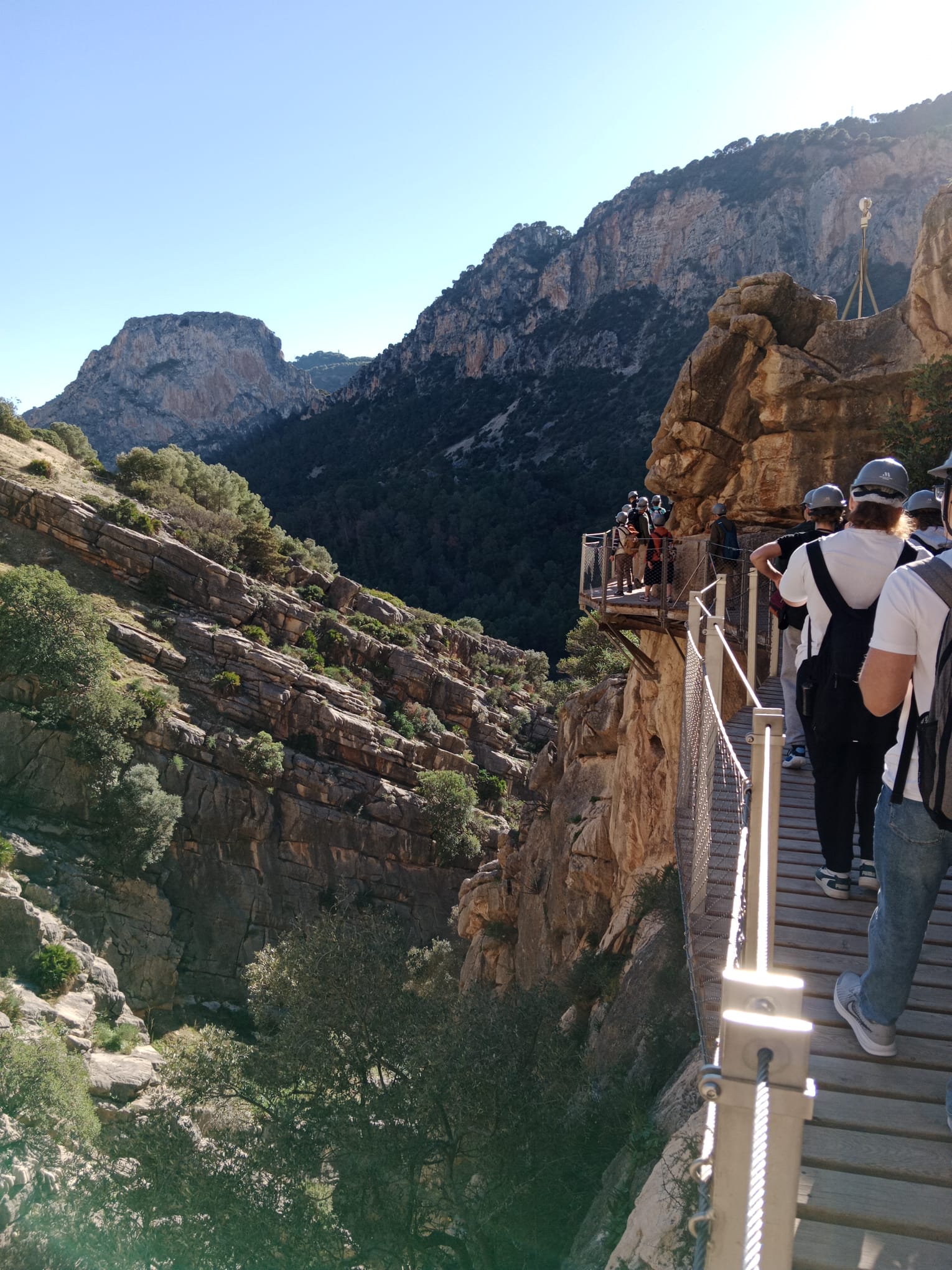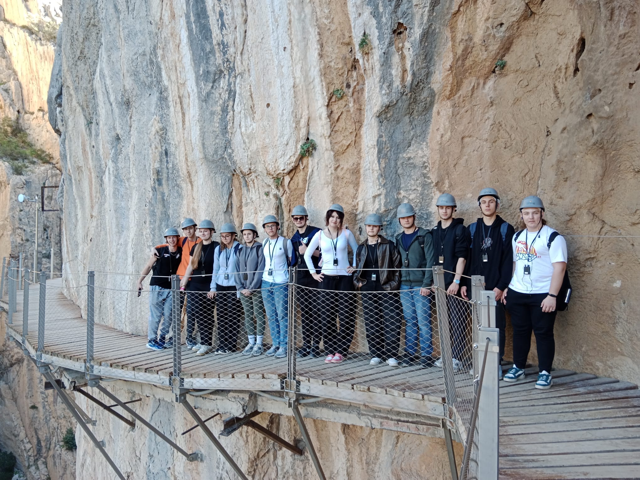 7 grudnia udaliśmy się na wycieczkę do parku narodowego Desfiladero de los Gaitanes, żeby zobaczyć i przespacerować się jedną z największych atrakcji turystycznych Hiszpanii Caminito del Rey (Ścieżka Króla). Trasa w dużej części ciągnie się wzdłuż pionowych ścian głębokiego na 100 metrów wąwozu, a kończy wiszącym nad przepaścią mostem. Przy szlaku w kilku miejscach spotkaliśmy przyzwyczajone do widoku turystów kozice. Szczęśliwie dotarliśmy w komplecie do końca szlaku, ale niestety nie obyło się bez strat w sprzęcie