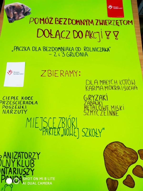 2 i 3 grudnia w naszej szkole przeprowadziliśmy coroczną zbiórkę najpotrzebniejszych rzeczy i żywności dla zwierzaków ze Słupskiego schroniska. Nasi wolontariusze zbierali m.in. prześcieradła, specjalistyczną karmę oraz zabawki. Nasi uczniowie i nauczyciele przynieśli ponad 100 kg karmy dla zwierząt. Każdemu zaangażowanemu serdecznie dziękujemy!