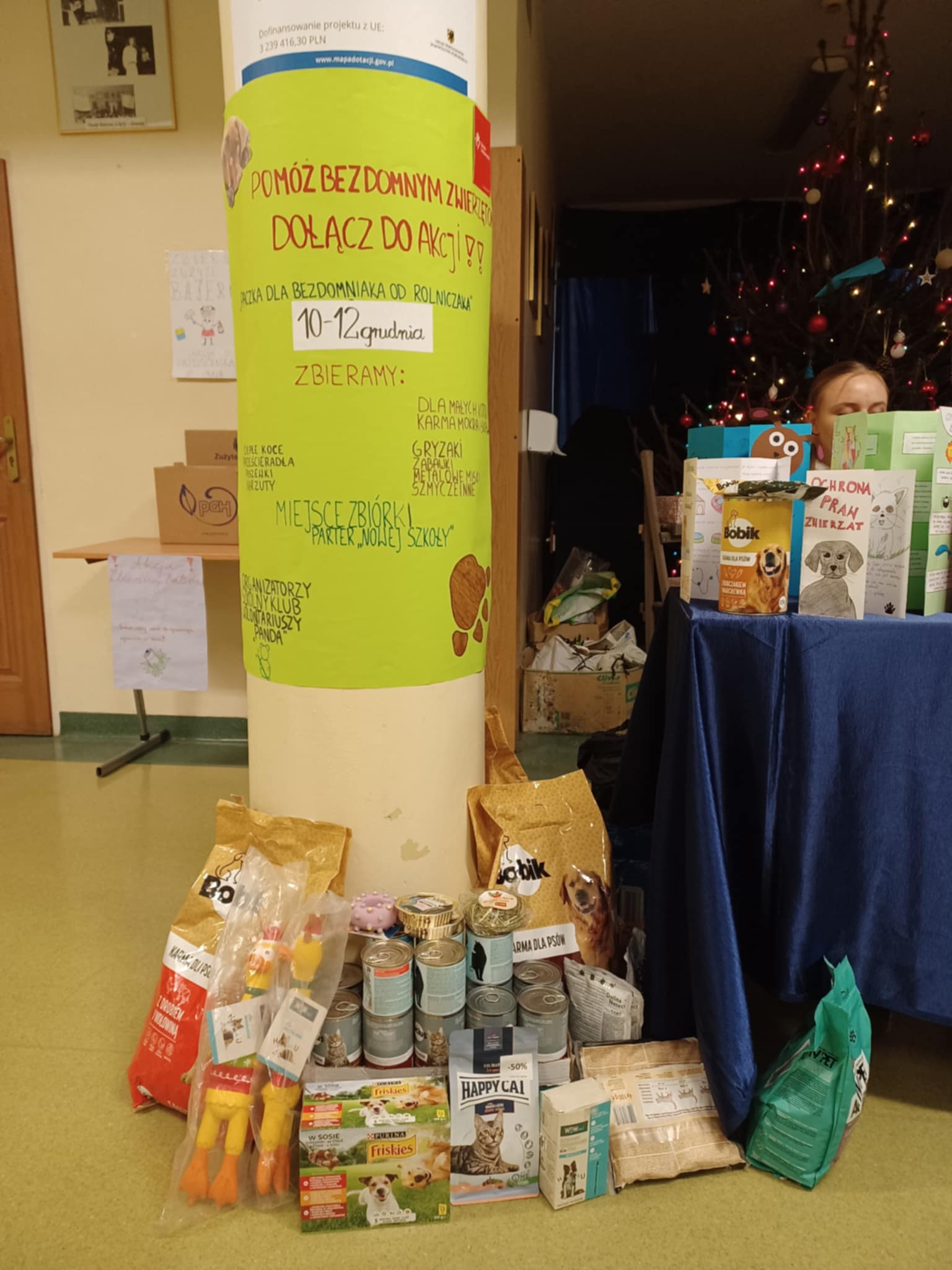 W dniach 10-13 grudnia wolontariusze z naszego klubu zorganizowali w szkole zbiórkę karmy i akcesoriów dla zwierząt przebywających w schronisku. Prowadziliśmy tą akcję wspólnie z Samorządem Szkolnym.