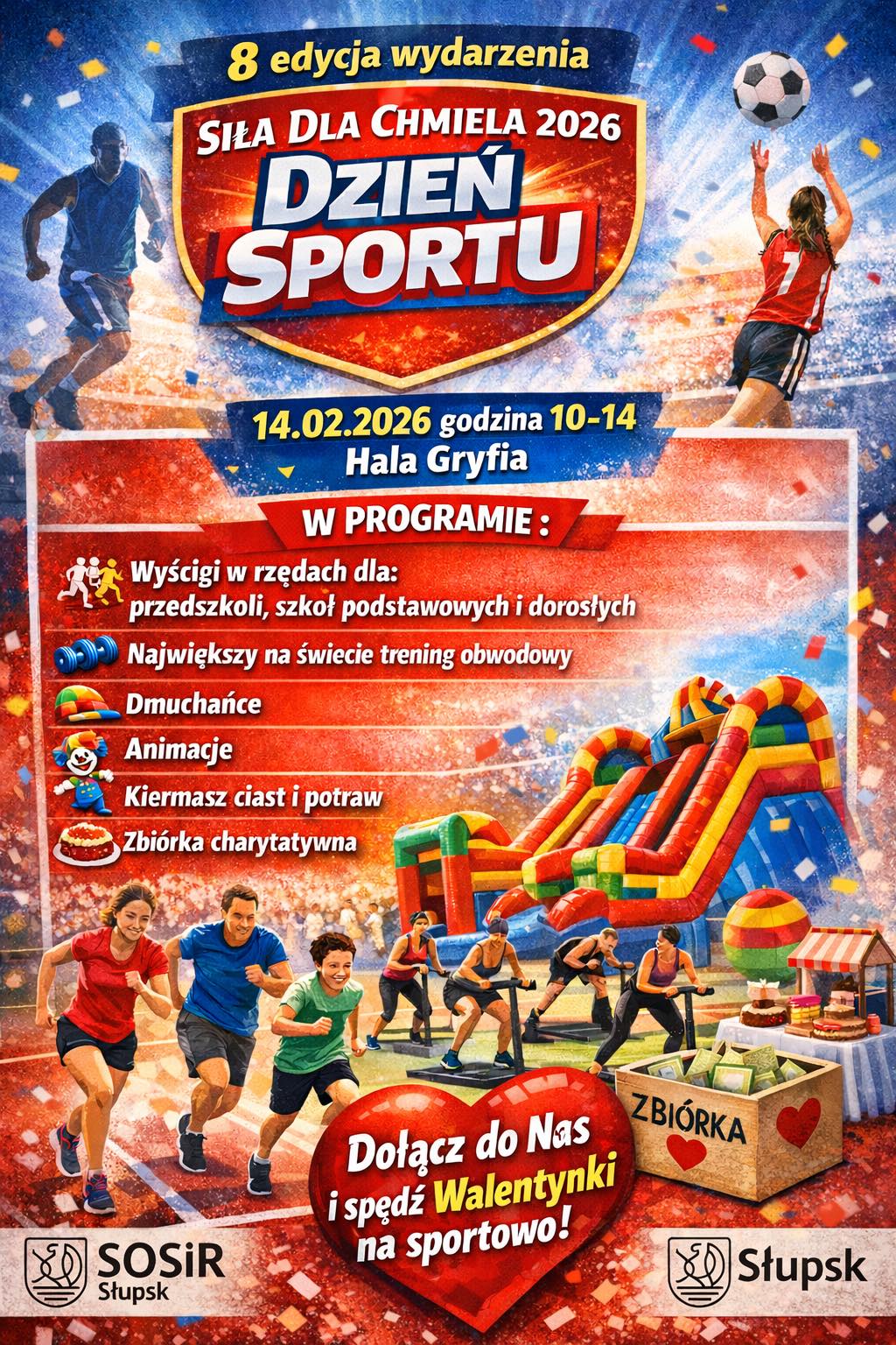 W sobotę, 14 lutego, w słupskiej hali Gryfia odbyła się ósma edycja charytatywnego wydarzenia „Siła dla Chmiela”. Mieszkańcy miasta, w tym Wolontariusze z Klubu "Panda", wspólnie zbierali środki na rehabilitację Kuby Chmielowca oraz wsparcie innych potrzebujących, łącząc sport, zabawę i pomoc.