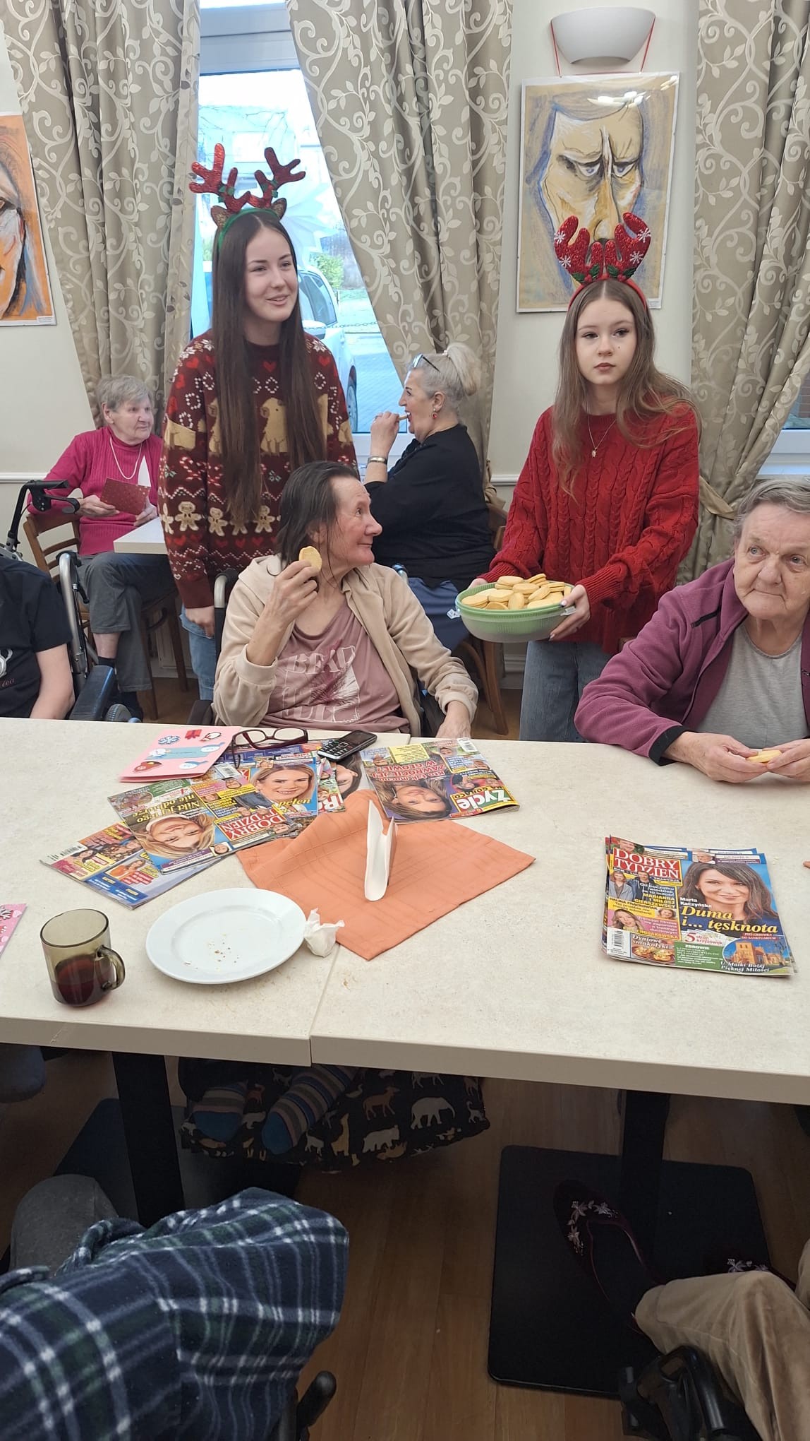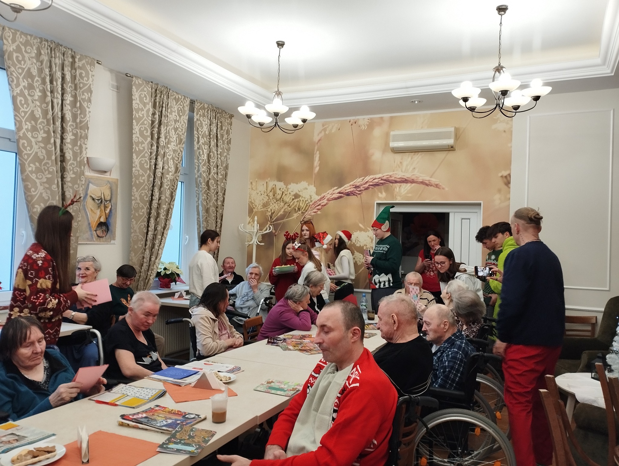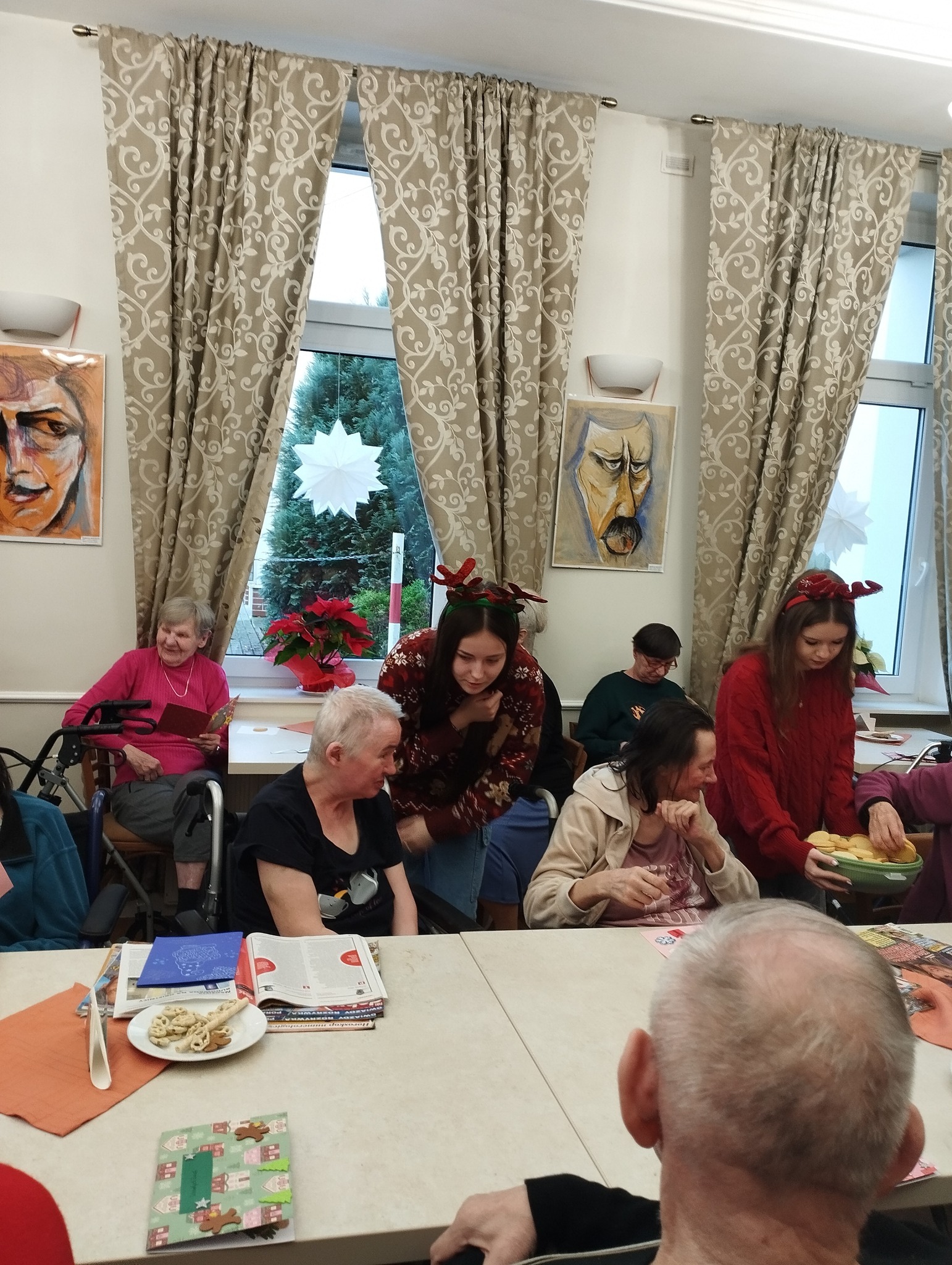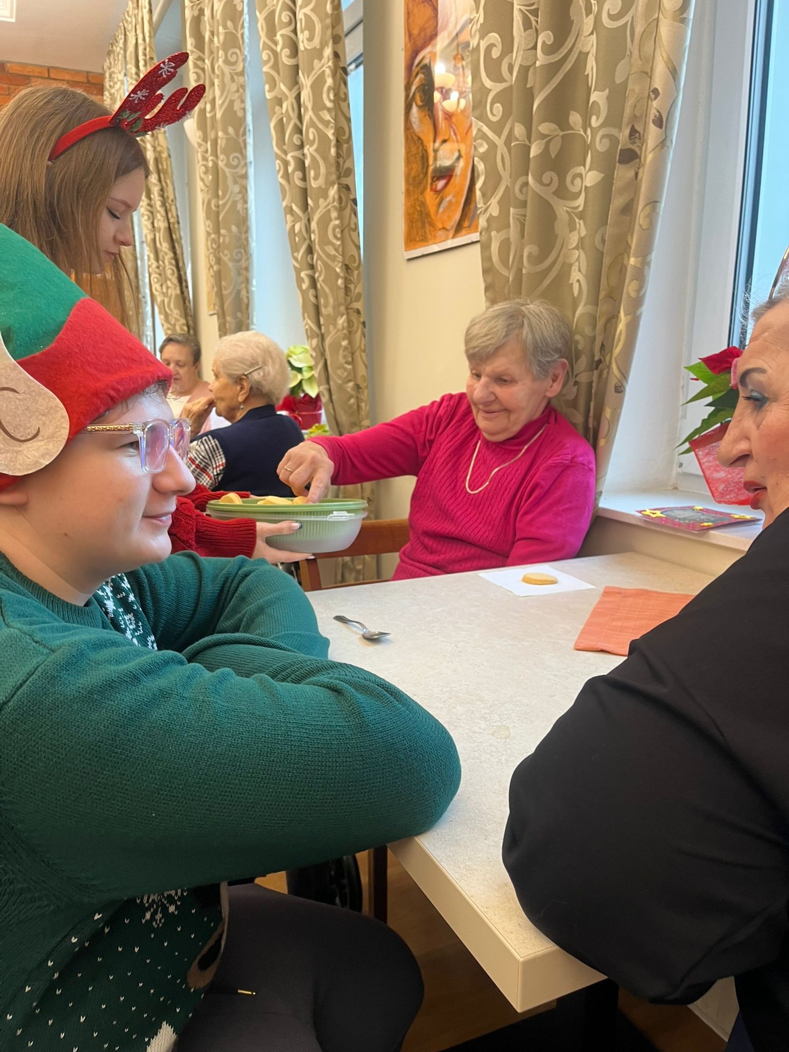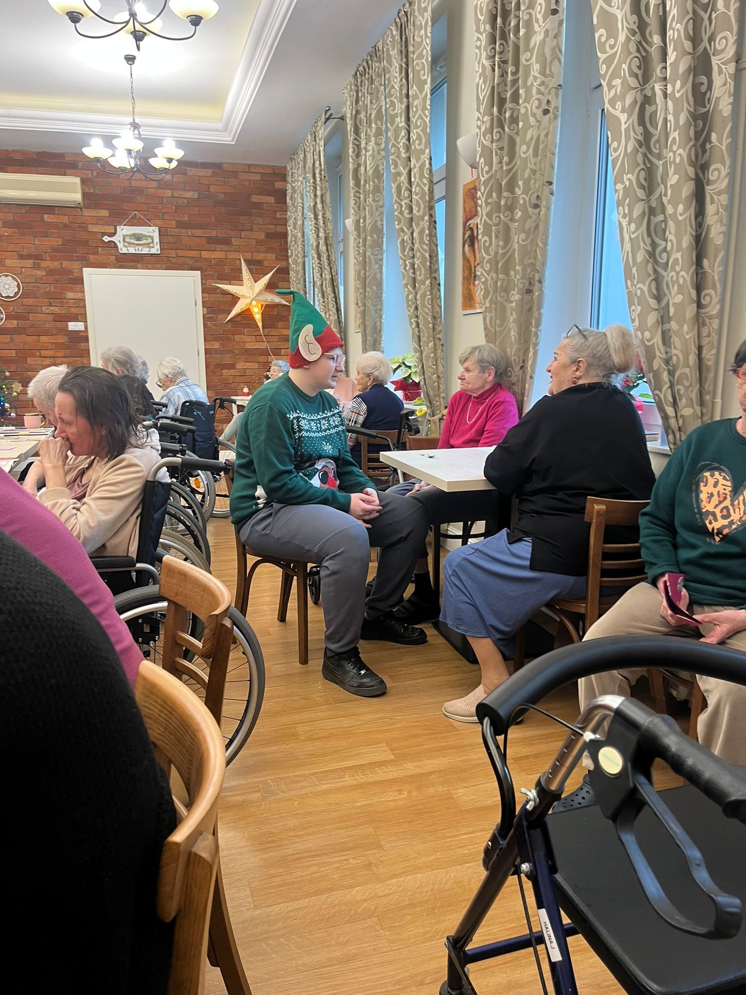 Było naprawdę serdecznie i wzruszająco – zanieśliśmy im własnoręcznie wykonane kartki świąteczne, podzieliliśmy się ciastkami i wspólnie śpiewaliśmy kolędy.