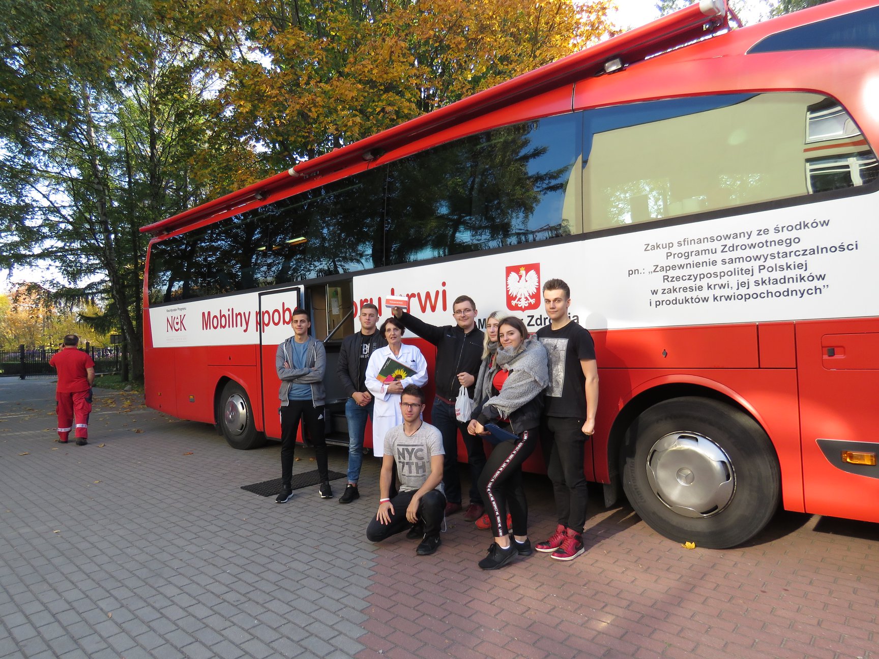 W środę 17 października 2018r.,zgodnie z wieloletnią tradycją, odbyła się w szkole akcja honorowego oddawania krwi, w której wzięli udział zarówno uczniowie jak i nauczyciele szkoły. Oddawanie krwi odbyło się w godzinach od 8:00 do 14 :00. W tej szlachetnej akcji wzięło udział 54 uczniów i 3 nauczycieli. Oddawanie krwi odbyło się w mobilnym krwiobusie na terenie szkoły. Łącznie krew oddało 39 osób w ilości 17 litrów 110 ml krwi. Akcja poprzedzona była spotkaniami edukacyjnymi z zakresu krwiodawstwa przeprowadzonymi przez pielęgniarkę szkolną i wolontariuszy, które były skierowane do uczniów klas trzecich i czwartych.