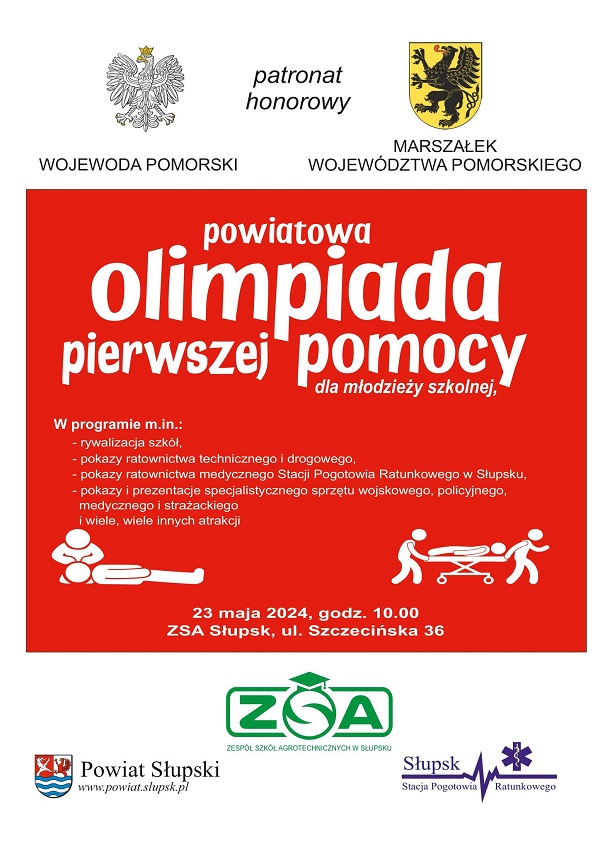 Dnia 23.05.2024 r. w Zespole Szkół Agrotechnicznych w Słupsku odbył się finał V Powiatowej Olimpiady Pierwszej Pomocy dla młodzieży szkolnej. W rywalizacji drużynowej udział wzięli uczniowie z 15-stu szkół powiatu słupskiego oraz miasta Słupska. Finał Olimpiady to sprawdzian nabytej przez cały rok szkolny wiedzy i umiejętności. Każda reprezentacja uczestniczyła w pięciu konkurencjach.