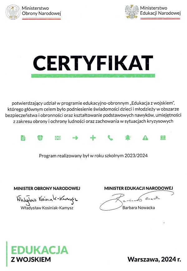 W dniach 15,17,18,19,23,24 kwietnia 2024 nasza szkoła uczestniczyła w kolejnej edycji realizowanego w roku szkolnym 2023/2024 ogólnopolskiego programu edukacyjnego „KULTURA BEZPIECZEŃSTWA ”.