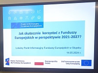 W dniach od 14.05 do 17.05.2024 oraz 27.05.2024 w Zespole Szkół Agrotechnicznych mieliśmy zaszczyt gościć Panią Olimpię Klamann, doradcę funduszy europejskich z Lokalnego Punktu Informacyjnego Funduszy Europejskich w Słupsku. Przeprowadziła ona prelekcje na temat różnych źródeł pozyskiwania funduszy na rozpoczęcie i prowadzenie działalności gospodarczej oraz poinformowała jak skutecznie korzystać z Funduszy Europejskich w perspektywie 2021-2027.