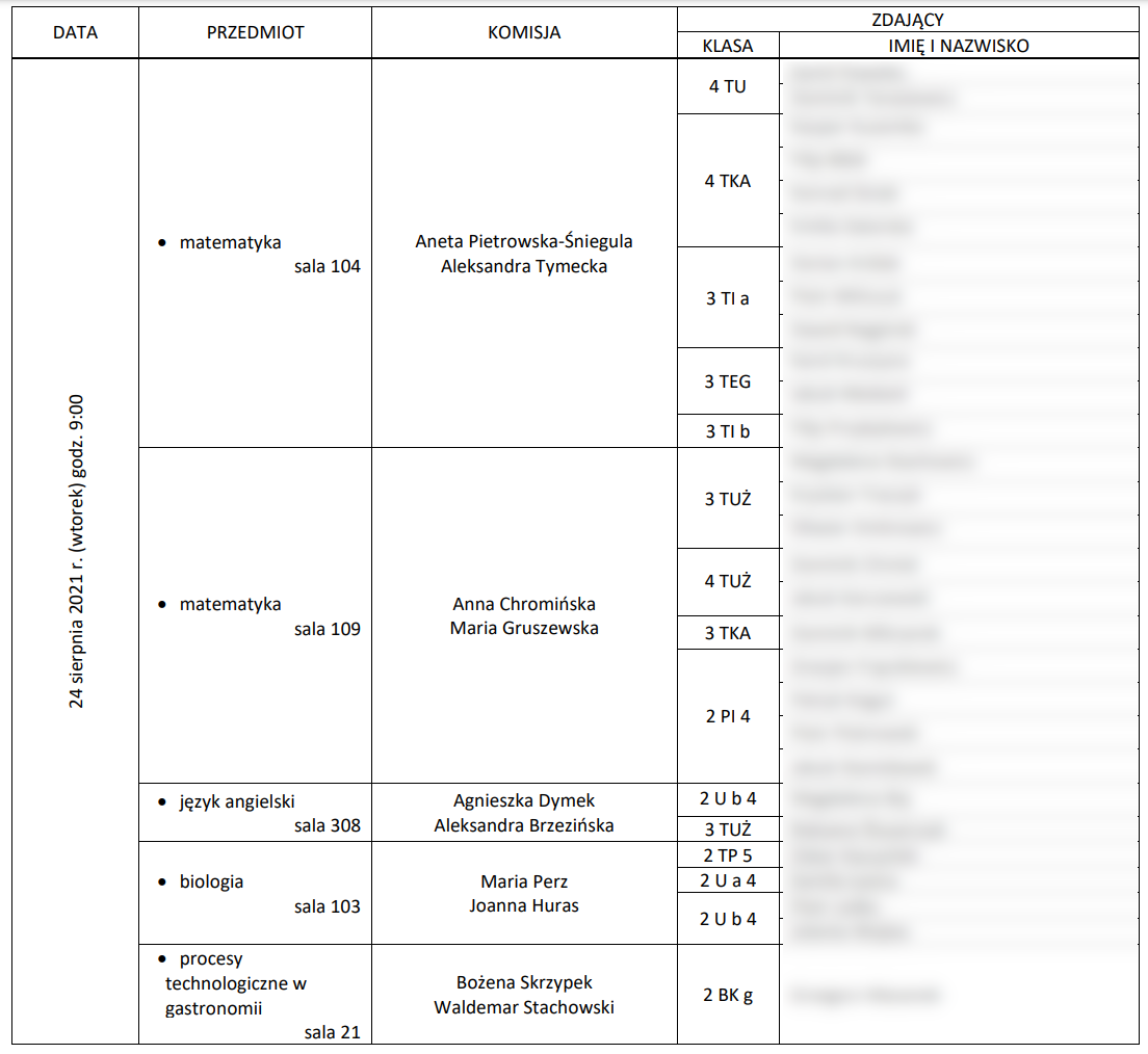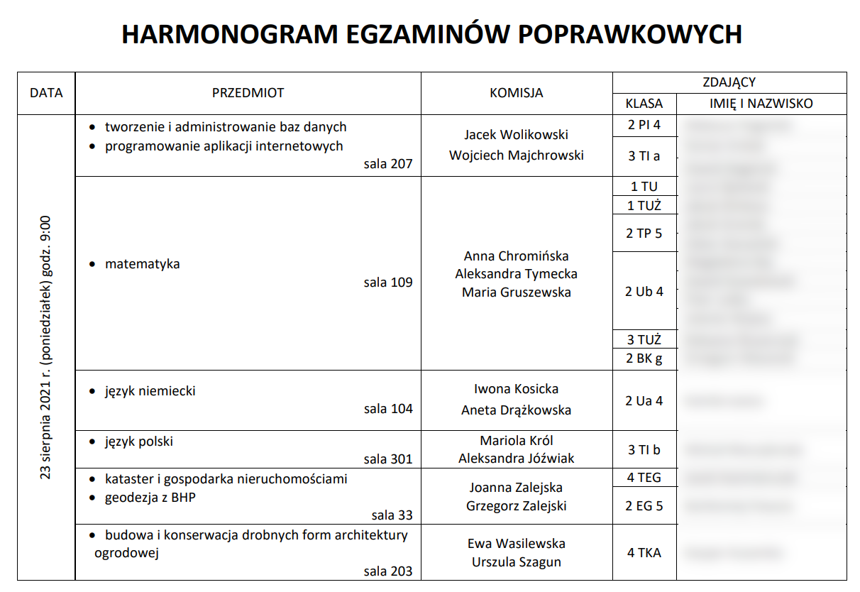 Harmonogram egzaminów poprawkowych: