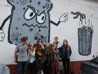 29.09.2015r. najaktywniejsi wolontariusze ze szkół średnich i gimnazjów wzięli udział w GRZE TERENOWEJ - "O co chodzi z tą żywnością?" w ramach projektu "PRZEchodnik" realizowanego przez Bank Żywności w Słupsku. Naszą szkołę reprezentowali wolontariusze z klasy: 3TAK, 2 TAK i 3 TI. Młodzieżowe grupy wyruszyły na ulice miasta, żeby zmierzyć się z kreatywnymi zadaniami dotyczącymi m.in. tematu marnowania jedzenia. Zadania były różnorodne: od kulinarnych przez muzyczne, teatralne, sportowe i dziennikarskie. Zabawa była bardzo udana. Na zdjęciach z tego wydarzenia widać także mur wykonany w ramach projektu.